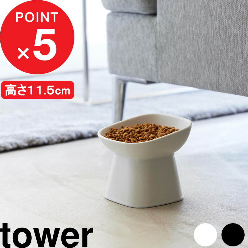 【12月5日はポイント最大10倍祭!】フードボウル 食べやすい高さ陶器ペットフードボウル タワー tower 犬 エサ入れ ペット 食器 陶器製 猫 エサ皿 1779 1780 白 黒 シンプル 犬 餌入れ 高さ 猫 水入れ 犬 餌入れ おしゃれ タワーシリーズ 山崎実業 yamazaki ヤマジツ