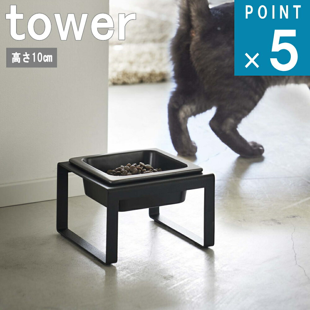 山崎実業 tower [ ペットフード ボウル スタンド トール タワー ] 公式 通販 サイト 餌 エサ台 餌入れ ドッグ フード 高さ10cm 犬 猫 犬用 猫用 室内 おしゃれ ペット用品 おしゃれ モノトーン ホワイト ブラック 白 黒 5816 5817