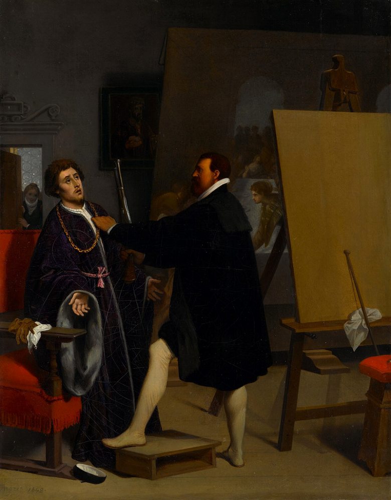 絵画 インテリア 額入り 壁掛け複製油絵ドミニク・アングル ティントレットのアトリエにいるピエトロ・アレティーノ 油彩画 複製画 選べる額縁 選べるサイズ