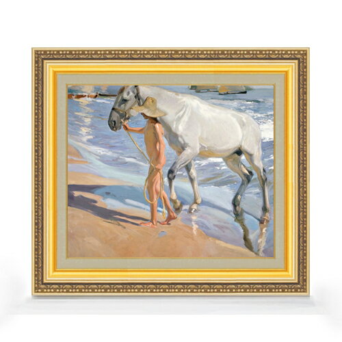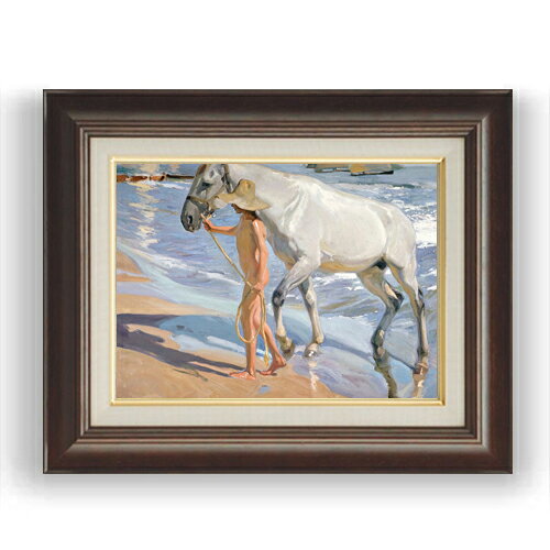 【油絵 直筆仕上げ】ソローリャ The Horses Bath F8 【額入り】 絵画 販売 8号 油彩 風景画 602×528mm 複製画 送料無料 プレゼント ギフト 開店祝い 開業祝い 退職祝い 新築祝い リビング 玄関 モダン アートフレーム 壁掛け