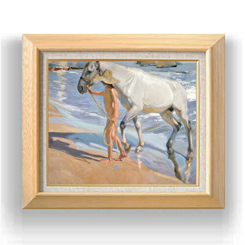 【油絵 直筆仕上げ】ソローリャ The Horses Bath F6 【シンプルフレーム】 絵画 販売 6号 油彩 風景画 440×348mm 複製画 送料無料 プレゼント ギフト 開店祝い 開業祝い 退職祝い 新築祝い リビング 玄関 モダン アートフレーム 壁掛け