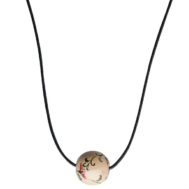 会津漆器・会津塗 丸玉ペンダント アラベスク(漆塗・手塗・手描)うるわし玉 (白漆)