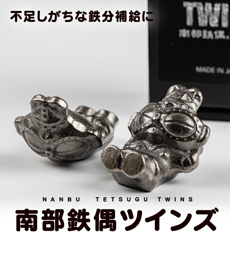 内容【腹筋】サイズ:W3.8×D5×H3cm重量:115g材質:鋳鉄【背筋】サイズ:W3.8×D5×H3cm重量:105g材質:鋳鉄【ご確認ください】※使用説明書を一緒に送付しますので、ご確認の上ご使用・保存してください。※鋳物のため制作工程の都合上、大きさや重量は表記と若干誤差がある場合がございます。地場産品類型【3号】(平成31年総務省告示第179号第5条)盛岡市内において実施する工程により、半分以上の付加価値が生じている。製作会社【株式会社壱鋳堂】営業時間:09:00-17:30/TEL:019-681-0560定休日:土曜・日曜・祝祭日・年末年始・お盆商品のお問い合わせ【有限会社トゥレイス】TEL:019-658-8841事業者株式会社壱鋳堂備考※画像はイメージです ※沖縄県・その他離島への発送不可 ※繁忙期はお届けが2~3ヵ月かかる場合がございます。 ※お申し込みが殺到した場合、準備ができ次第、順次発送となります。 ※お客様都合でお受取りができなかった場合、返礼品の再送は致しません。 ※配送業者のご指定はできません。 ※配達日の指定はできません。 ※返礼品に不都合があった場合(お手入れも含め)ご使用前にご連絡をください。(使用後はいかなる理由であれ交換致しかねます) ・ふるさと納税よくある質問はこちら ・寄附申込みのキャンセル、返礼品の変更・返品はできません。あらかじめご了承ください。【ふるさと納税】鉄分補給に最適 南部鉄器【南部鉄偶ツインズ(腹筋&背筋)】 雑貨 日用品 工芸品 装飾品 壱鋳堂が贈るキュートな伝統工芸品【南部鉄偶シリーズ】 縄文時代に多産や豊穣を祈願し作られたとされ、目の部分がエスキモーが日射し避けに着用する遮光器のかたちをしていることから名づけられた「遮光器土偶」がモチーフの南部鉄偶。 日本人の5人に1人は貧血症、または準貧血症といわれています。 日頃不足しがちな成分として「鉄分」が挙げられますが、南部鉄偶から溶け出す鉄は「二価鉄」が多いことが分かっています。 実は腸で吸収される鉄分はこの「二価鉄」だけ!つまり、とても効率よく鉄分の吸収ができるのです。 お湯を沸かすとき、お鍋や煮込み料理を作るとき、鉄偶を一緒に煮込むことで自然に鉄分を摂取することができます。 二頭身の小柄で可愛らしい姿と侮ることなかれ!見た目からは想像できないほど皆さんの生活のお役に立ちます!! 他の鉄偶より一回り小さめなので、箸置きなどにもお使いいただけます。 ●お役立ちポイントその1 みなさんの鉄分補給のお手伝い! お鍋ややかんに入れて一緒に煮込むだけで簡単に鉄分が摂取できます。 ※使用した後はとても熱くなっていますのでお気を付けください。 ●お役立ちポイントその2 貝の砂出し、黒豆やなす漬けの色だし! ●お役立ちポイント??その3 かわいい見た目で癒し効果!? ※癒し効果があるかどうかは・・・個人差がありますのでご了承ください・・・ 【鉄製品の錆について】 鉄製品は、水分が表面に付着すると直ぐにでも素材性質上、発錆が始まります。 サビが発生した=不良品、不具合というわけではありません。 鉄サビは健康衛生上、人体に害はございません。 寄附金の用途について (1) 地域の産業を元気に!商工業・農林業など地域の経済を応援 (2) 観光・移住・歴史・文化など魅力あるまちづくりを応援! (3) 盛岡の将来を担う子ども・若者を応援! (4) 誰もが自分らしく輝ける盛岡のまちづくりを応援! (5) 芸術文化やスポーツなどを通じて生きがいを感じられるまちづくりを応援! (6)みんなで築く福祉のまちづくりを応援! (7) 誰もが健やかに生活できるまちづくりを応援! (8) 多様な主体が協働するまちへ!地域コミュニティの活性化を応援 (9) 災害に強い安全・安心なまちづくりを応援! (10)かけがえのない環境を未来へ!持続可能なまちづくりを応援 (11)快適で暮らしやすいまちへ!誰もが住みやすいまちづくりを応援 (12)市長におまかせ!元気な盛岡づくりを応援 (13)その他(寄附の使途を指定) 受領証明書及びワンストップ特例申請書のお届けについて 【受領証明書】受領証明書は入金確認後、注文内容確認画面の【注文者情報】に記載の住所に、2週間以内に発送いたします。お礼の品とは別にお送りいたします。【ワンストップ特例申請書について】ワンストップ特例申請書は、入金確認後2週間以内に注文内容確認画面の【注文者情報】に記載の住所へお送り致します。ワンストップ特例をご利用される場合、1月10日までに申請書が当庁まで届くように発送ください。オンラインによる申請と、書面による申請の2通りの方法で申請を受け付けています。 【オンラインによる申請】1月10日までに次の「自治体マイページ」サイトより手続きしてください.URL:https://event.rakuten.co.jp/furusato/guide/onestop/online/(申請にはマイナンバーカードとデジタル庁提供のマイナポータルアプリが必要です。) 【書面による申請】1月10日までに申請書が当市まで届くように発送ください。マイナンバーに関する添付書類に漏れのないよう御注意ください。ダウンロードされる場合は