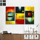 【BLACK FRIDAY限定クーポン】 油絵 絵画 インテリア 壁掛け【MidCentury Modern】抽象 モダンアート マルチカラー おしゃれ 3枚組 油彩画