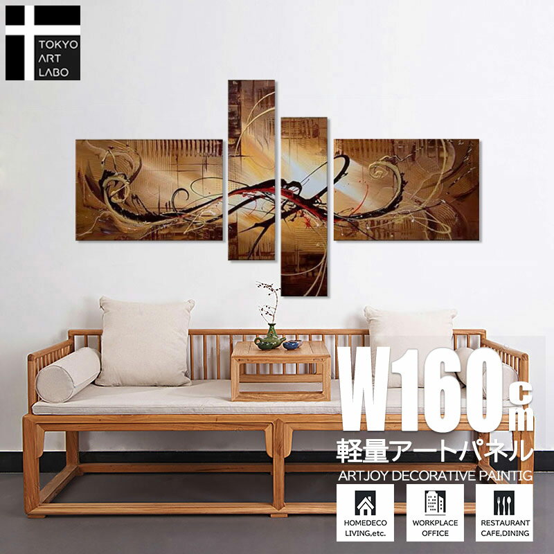 【BLACK FRIDAY限定クーポン】 油絵 絵画 インテリア 壁掛け ModernAbstract おしゃれ アートパネル クリニック オフィス ダイニング カフェ 入口 玄関 内装用 大型 茶系 4枚組 油彩画