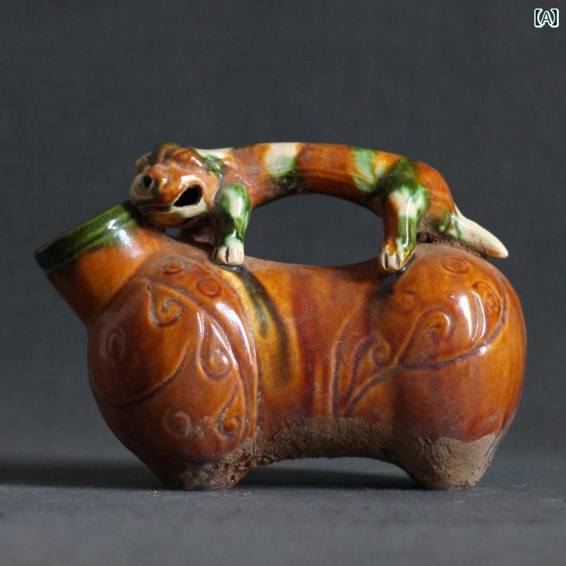 アンティーク 雑貨 飾り 唐 三 彩 陶器 瓶 虎 頭 壺 ハンドル ポット フェイク レトロ 尿 アンティークコレクション 古風 品物 装飾品