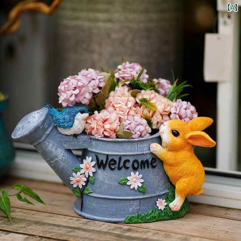 庭 装飾 飾り フラワーポット じょうろ 鳥 ウサギ 動物 植木鉢 ガーデニング 雑貨 装飾 庭 屋外 装飾品