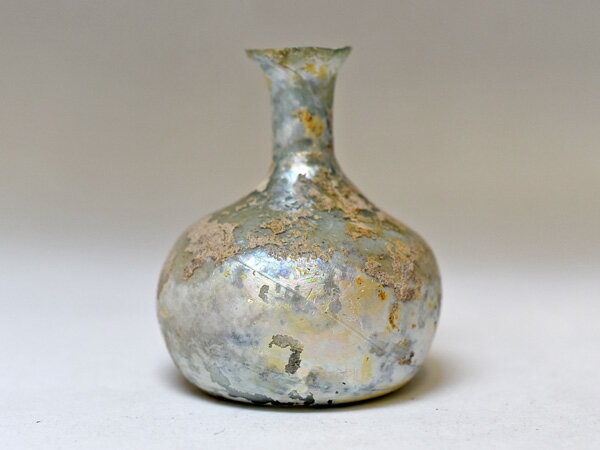 【2507】古代ローマングラス美銀化極薄長頸ふっくら小瓶 ボトル(高さ約5.6Cm)【とんぼ玉】【トンボ玉】【アンティークビーズ】【ローマンガラス】【ビーズ】【骨董】【銀化】【パティナ】【送料無料】【Ancient Roman glass】【bottle】