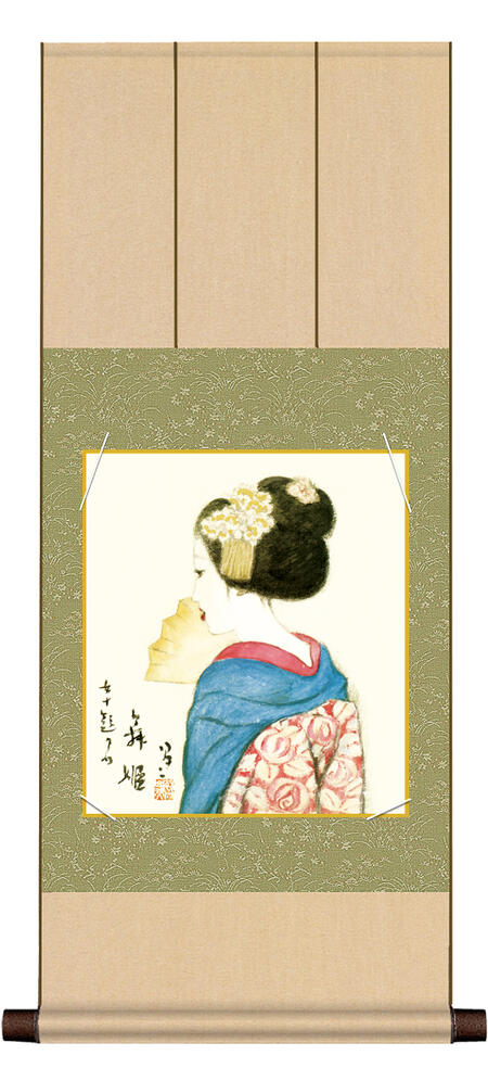 掛軸 色紙掛・色紙セット 「舞姫」竹久夢二 <送料無料> 八坂緞子色紙掛 色紙 インテリア アート 日本画 複製画 お祝い 引越 ギフト 事務所 店舗 移転 開店祝い 外国人向け土産 リビング 掛軸 有名画 31cm×75cm 大正ロマン 夢二
