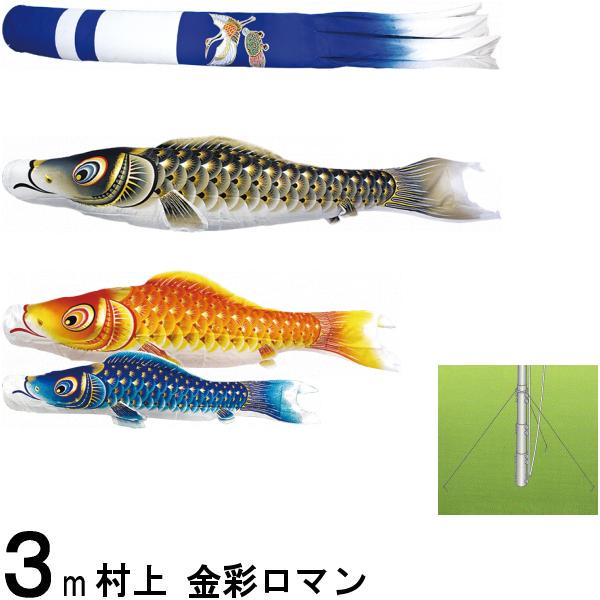鯉のぼり 村上 こいのぼりセット 金彩ロマン 3m 新型鶴亀吹流し ガーデンセット 撥水加工 265057421