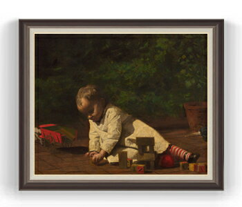 【油絵 直筆仕上げ】イーキンズ 遊んでいる赤ちゃん F30サイズ 【油彩 国内生産 インテリア】絵画 販売 30号 大きな絵画サイズ 額入り 人物画 額縁 1039×857mm 複製画 送料無料
