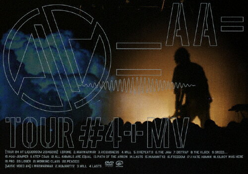 品 番:VIBL-705発売日:2014年09月24日発売出荷目安:5〜10日□「返品種別」について詳しくはこちら□収録:2014年2月9日 恵比寿リキッドルーム品 番:VIBL-705発売日:2014年09月24日発売出荷目安:5〜10日□「返品種別」について詳しくはこちら□DVD音楽(邦楽)発売元:ビクターエンタテインメント2014年2月9日に恵比寿リキッドルームで開催されたAA=の『TOUR #4』のファイナル公演とオリジナルスプリットアルバム『#』と『4』のミュージックビデオを収録した映像作品が登場。通常盤DVD。収録情報《1枚組 収録数:26曲》 1.DRONE《収録:2014年2月9日 恵比寿リキッドルーム》 2.WARWARWAR 3.VICIOUSNESS 4.WILL 5.||:REPEAT:|| 6.THE JAM 7.DISTRAP 8.THE KLOCK 9.GREED... 10.POSi-JUMPER 11.sTEP COde 12.ALL ANIMALS ARE EQUAL 13.PATH OF THE ARROW 14.LASTS 15.HUMANITY2 16.FREEDOM 17.I HATE HUMAN 18.KILROY WAS HERE 19.PRG 20.LOSER 21.WORKING CLASS 22.PEACE!!! 23.WARWARWAR 24.HUMANITY2 25.WILL 26.LASTS