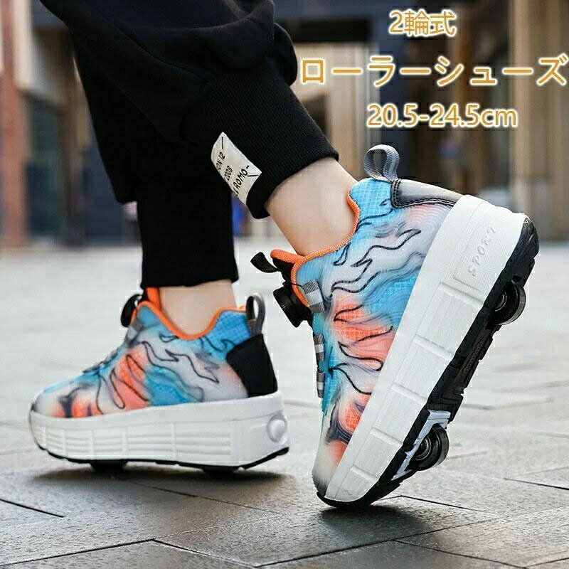 【P2倍!10422円→実質10214円 11/17まで】ローラーシューズ ジュニア キッズ 大人 グラデーション ローラースニーカー 2輪 子供用 インラインシューズ 新年 クリスマス 誕生日 プレゼント ギフト ローラースケート 2way スニーカー