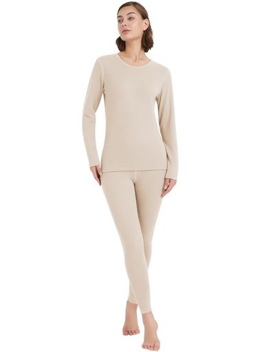 [Sillictor]防寒インナーレディース上下セット裏起毛ヒートテック丸首あったかインナー上下アンダーシャツ+ロングタイツ保温インナーウェア【ウールとシルク入り】冬用YLW02-bg-3XL(日本サ…