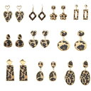 ピアス レディース 水滴形 ヒョウ柄 アニマル柄 合金 幾何学模様 丸形 ハート型 レザー イヤリング セット エレガント 電気メッキ加工(x2)