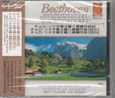 【中古】 ベートーヴェン/チェロ・ソナタ第3番イ長調作品69、第4番ハ長調作品102-1、第5番ニ長調作品102-2 GRN516