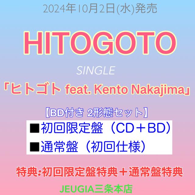 購入特典:オリジナルフォトカード(初回限定盤絵柄+ 通常盤絵柄) 付き!HITOGOTO『ヒトゴト feat.Kento Nakajima』2形態セット【初回限定盤 (CD+Blu-ray) + 通常盤 (CD ONLY)】[三条本店]