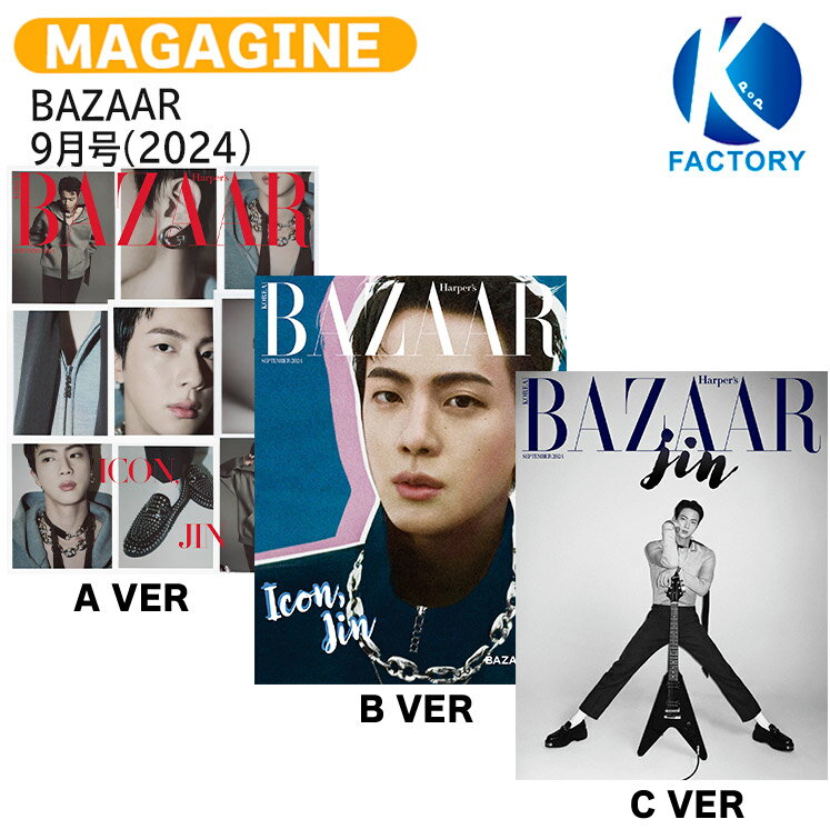 [当店限定特典付] (和訳付き) BAZAAR 9月号(2024) 3種選択 表紙 BTS JIN / 防弾少年団 バンタン ジン / 韓国雑誌 KOREA / 送料無料