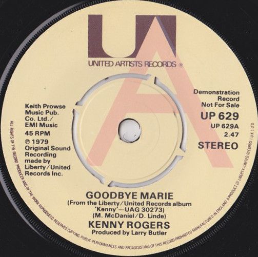 【中古】英7” Kenny Rogers Goodbye Marie UP629PROMO United Artists Recor /00080