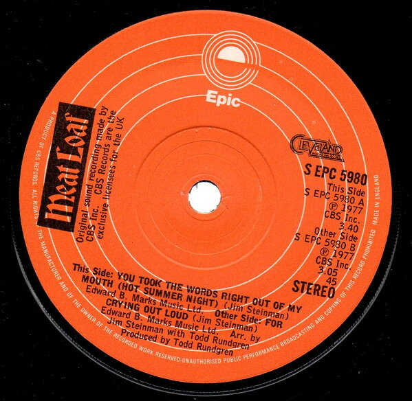 【中古】英7” Meat Loaf You Took The Words Right Out Of My Mouth SEPC5980 Epic, Cleveland Inte /00080