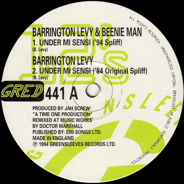 【中古】英12” Barrington Levy & Beenie Man Under Mi Sensi GRED441 Greensleeves Records /00250