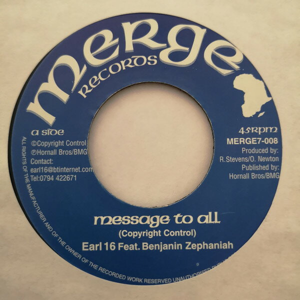 【中古】英7” Earl Sixteen Feat. Benjamin Ze Message To All MERGE7008 Merge Records /00080