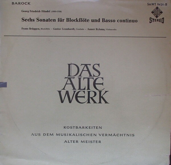 【中古】LP Frans Bruggen (Blockflote), Gu Georg Friedrich Handel : Sechs Sonaten Fur Blockflo SR1020 TELEFUNKEN /00400