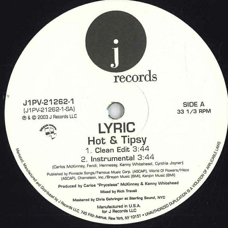 【中古】米12" Lyric Hot & Tipsy J1PV212621 J Records /00250