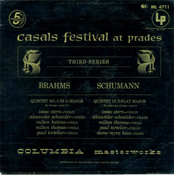 【中古】米LP Johannes Brahms / Robert Schum Brahms, Schumann ML4711 Columbia Masterworks /00260