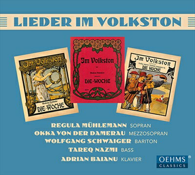 曲目・内容1.レーガー(1873-1916):素朴な歌 Op.76-3 Waldeinsamkeit - 森の孤独2.ダルベール(1864-1932):Rosmarin - ロスマリン3.ベッカー(1842-1924):Niederlandisches Wiegenlied - オランダの子守歌4.バーガー(1861-1911):Nein und ja - イエス、ノー5.ブレッヒ(1871-1958):Schon Rohtraut - 美しいロートラウト6.ブリュル(1846-1907):Nachtwandler - 夜のさすらい人7.ブンガート(1845-1915):Frau Holle - ミセス・ホッレ8.デッバー:So Einer war auch Er - 彼も一人9-10.オイレンブルク(1847-1921):Wir Beide - 我々はどちらも浜辺で忠実な思い出11.ゲルンスハイム(1839-1916):Abendlied - 夕べの歌12.ゴルトシュミット(1848-1906):Gebet - 祈り13.ヘルマン(1870-1931):Das Ringlein sprang entzwei - 指輪は半分に14.ヒルダッハ(1849-1924):Der Schnitter - 死神15.ホーホベルク(843-1926):Der schonste Tod - 最も美しい死16.フンパーディンク(1854-1921):Rosmarin - ロスマリン17.カーン(1865-1951):Volkslied - 民謡18.キーンツル(1857-1941):Rieke im Manover singt - リエケは機上で歌う19.クレッフェル(1840-1913):Ich denke oft an's blaue Meer - 私はしばしば青い海について考える20.コス:Die Verlassene - 去るもの21.ラッセン(1830-1904):Hoppoldey22.オックス(1858-1929):Von mond und den sternlein - 月とお星さま23.プフィッツナー(1869-1949):Untreu und trost - 不平と慰め24.ライネッケ(1824-1910):Rheinisches Volkslied - ラインの民謡25.シリングス(1868-1933):Ach, Herzigs Herz! - ああ、心を込めて26.ゲオルク・シューマン(1866-1952):Vogleins Begrabnis - 小鳥の葬式27.ハンス・ゾマー(1837-1922):Soldatenabschied - 兵士の別れ28.トゥイレ(1861-1907):昔の恋の歌29.ジークフリート・ワーグナー(1869-1930):Schafer und Schaferin - 羊飼いと羊飼いの娘30.ゼプラー(1858-1918):Im Laubengang - ラウベンガンクにて31-32.ズンペ(1850-1903):美しきシュヴァーベンからヘルブシュトにて窓の下でアーティスト(演奏・出演)レグラ・ミューレマン(ソプラノ)…1.2.11.12.16.18.31.32オッカ・フォン・デル・ダメラウ(メゾ・ソプラノ)…1.3.8.13.17.19.20.24.26.ヴォルフガング・シュヴァイガー(バリトン)…1.7.15.21.23.25.27.29.30.タレク・ナズミ(バス)…1.4.5.6.9.10.14.22.28.エイドリアン・バイアヌ(ピアノ)レコーディング2016年12月12・13・15日Studio-2, Bayerischer Rundfunk, Munchen商品番号:OC1875Lieder im Volkston -民謡のスタイルによる歌曲集 [ダムラウ/ミューレマン/ナズミ/シュヴァイガー/バイアヌ] Vocal Music (German) - REGER, M. / ALBERT, E. d' / BECKER, R. / BLECH, L. (Lieder im Volkston) (Damerau, Mühlemann, Nazmi, Schwaiger, Baianu)CD 発売日:2017年10月27日 NMLアルバム番号:OC1875 Oehms Classicsベルリンの出版社「August Scherl」が1899年から1944年に刊行していた週刊誌「Die Woche」。ここで1903年に開催されたコンペティション“im Volkston - 新しい民謡“のために30人の作曲家が曲を提出、特別号に掲載されました。どの曲も「民謡の形式」を持ってはいましたが、少々芸術的になり過ぎてしまって、本来の目的「簡潔で美しく歌いやすい曲を発見する」には至らず、出版社は2回目のコンペティションを開催することになりました。今回は出版社から作曲家に直接依頼することはなく、自然に集まった様々な曲をWoche誌に掲載。大好評を得ました(残念なことにレーガーの「森の孤独」は素晴らしい出来栄えにも拘わらず落選、誌面では発表されませんでした)。このアルバムでは、全ての応募作中から美しい作品を選び演奏したものです。作曲家検索リンク(このタイトルに収録されている作曲家)オイレンブルクオックスカーンキーンツルクレッフェルゲルンスハイムコスゴルトシュミットG.シューマンシリングスズンペゼプラーゾマーダルベールデッバーテュイレバーガーヒルダッハプフィッツナーブリュルブレッヒブンガートフンパーディンクベッカーヘルマンホッホベルクライネッケラッセンレーガーS.ワーグナー