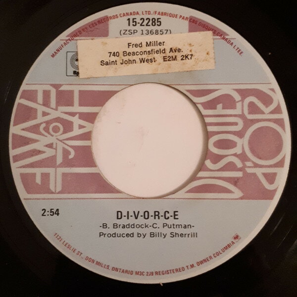 【中古】米7” Tammy Wynette D-i-v-o-r-c-e 152285 EPIC /00080