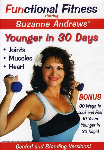 こちらのDVDは輸入盤DVDです。リージョン=フリーのDVDプレイヤーでない場合、再生できない可能性があります。リージョン=フリーのDVDプレイヤーはこちらでご案内しております。種別:DIGITAL VIDEO DISCジャンル:Health & Fitness発売日:2012/1/24収録分数:90ディスク枚数:1コメント:If you have 30 days, then you have time to turn back the clock! Younger in 30 Days is the doctor approved program that offers real life fitness solutions for your real life challenges. In just a month, you can be on the road to reclaiming younger joints, younger muscles and a younger heart with thirty minute workouts designed specifically to target each of those areas. Starring Suzanne Andrews, this Functional Fitness DVD requires no additional exercise equipment. Best of all, it's designed for any fitness level - so you can begin today! Plus, this DVD comes with two bonus features: 1. How to be younger without surgery with special guest, anti-aging expert, Carlos Mercado, MD. 2. 30 ways to look and feel 10 years younger in 30 days! No matter what age or shape you're in, 30 days is all you need for a younger you!