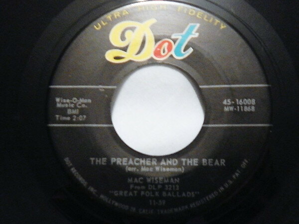 【中古】米7” Mac Wiseman The Preacher And The Bear / When Its Lamp Lightin T 4516008 Dot Records /00080