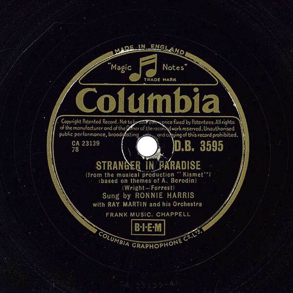 【中古】英78RPM/SP Ronnie Harris With Ray Martin And His Orchestra Stranger In Paradise / I Wonder DB3595 Columbia /00500