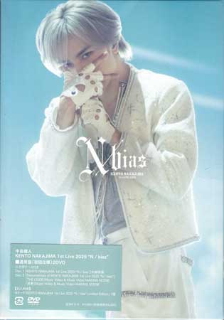 【ストーリー】有明アリーナで開催されたソロメジャーデビュー初のアリーナライブの模様を収録。 【収録内容】 [Disc1 DVD]1)ピカレスク2)N o’clock3)ヒトゴト4)黄昏てゆく夜に5)Teleportation6)Bye Bye Me7)SHE IS...LOVE8)Scene299)Jasmine Tea10)ROSSO11)jealous12)Mr.jealousy13)Dance on the floor14)Nocturne15)THE CODE16)ファタール17)カレカノ!!18)Love 風19)Hey!! Summer Honey20)Black Cinderella21)迷夢 -ENCORE- 22)CANDY〜Can U be my BABY〜23)Unite24)RUN [Disc2 DVD] 1)Documentary of KENTO NAKAJIMA 1st Live 2025 “N bias” 2)THE CODE」Music Video 3)THE CODE」Music Video Video MAKING SCENE 4)迷夢 Music Video 5)迷夢 Music Video MAKING SCENE【特典内容】封入特典:Nカード「KENTO NAKAJIMA 1st Live 2025 "N / bias" Limited Edition」 1種タイトルKENTO NAKAJIMA 1st Live 2025 “N / bias” 通常盤 / 中島健人監督出演者中島健人受賞・その他発売日2025年7月9日発売元・レーベルソニー・ミュージックレーベルズ仕様メディア形態DVDリージョンコードAll言語日本語(オリジナル言語)字幕収録時間158分/100分JANコード4547366747904製品コードSEBN-3/4