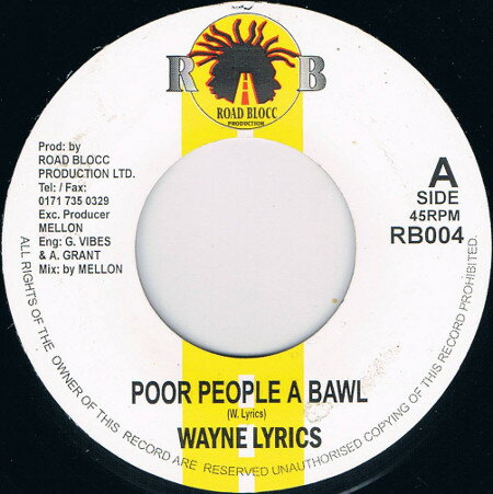 【中古】ジャマイカ7" Wayne Lyrics Poor People A Bawl RB004 Road Blocc Production /00080