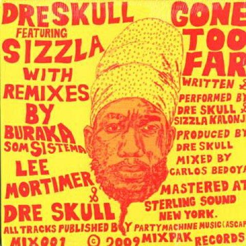 【新品】米12” Dre Skull, Sizzla Gone Too Far Orginal Mix; Lee Mortmer Remix / Burak MIX001 Mixpak Records /00240
