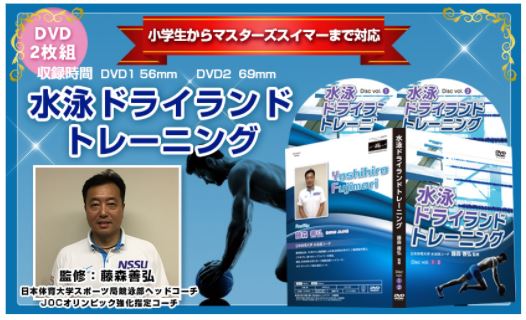 水泳の日本代表選手、オリンピック・世界水泳メダリストを何人も輩出している日体大の藤森善弘先生が解説する水泳のドライランドトレーニングに特化したDVD。 水中でなくても陸上でも水泳のスピードアップにつなげられるトレーニング方法が満載です。 【内容紹介】 スイマーの天敵、怪我を防ごう!その効率的な準備運動とは? これから自重トレーニングをしようとしているのに怪我をしては元も子もありません。 神経を繋げる為にも準備体操は一番大事です。その為このDVDでは準備体操から丁寧にお見せします。モデルが実際の動きと共に藤森コーチが言葉で解説を入れていますからとても分かりやすく覚えやすく、全身をしっかり解していきます。 50代オーバースイマーでもまだ間に合う!キック力を強化するためには? ここでは4水泳法全てのスピードアップに対応できるトレーニング法を紹介します。 年齢と共に足先がバラけてしまうになった、というお悩みの方には勿論、その必要な筋力がまだ付いていないすべてのスイマー必見のトレーニング法です。また、同時に腹筋、胸筋と体幹全てが鍛えられ、内転筋から体幹に繋げることが出来ます。このトレーニングは結果的に安定を保った泳ぎを取得できるので、キック力に自信のある方にも試す価値は充分にあります。 下半身を固定したまま上半身を思いのままに動かせるようになる方法とは? クロールの呼吸時に必要な捻じり・戻し、また背泳ぎのキャッチ時の捻じり・戻しに必要な筋肉を無駄なく鍛える方法が取得できます。上半身を捻じってまた戻す際にはどうしても下半身が動いてしまうものですが、しっかりと下半身を固定したままで上半身の動きに対応できるようになるには 重要なトレーニング法となります。 これが出来ればプロの泳ぎは習得目の前?!V字腹筋トレーニングとは? ここでは特に平泳ぎやバタフライで、前に突っ込む動作の時に必要な腹筋を鍛える方法を解説。 また、水中で浮力に合わせて行う競技である水泳には必要不可欠な筋力を正しく鍛えていきます。 腹筋は4水泳法全てに必要な持久力の源でもありますから、平泳ぎやバタフライ以外にも充分に活かし、プロの泳ぎにぐっと近づくことが可能です。 全ての水泳法に!背筋で安定を手に入れパワー全開になるには? なんか普通のトレーニング過ぎて…と侮っていては後悔します!ぱっと見では中学生が体育の授業前にやってるのと変わらないのでは?と思ってしまうのも無理はありません。筋トレをするのにまず一番最初に思い浮かべるのは腹筋と背筋でしょう。 しかし、腹筋と背筋でカウント法が違うべきであることはご存知でしたか?正しい方法で行わなければ、折角背筋を鍛えても無駄になります。なぜカウント法が異なるのかの説明と共に、そのカウント方法の違いを学んでいきます。 また、続いて下半身を使った背筋の鍛え方は中高生と小学生・マスターズで異なるトレーニング法を丁寧に伝授します。 年代問わず有効!体幹のブレを防止する鍛え方とは? ここでは特にクロールに対応するトレーニング法です。クロールスイマーなら一度はジレンマに陥る体幹のブレ、軸のズレ。この悩みを一気に解決に繋げる鍛え方を2種紹介。体幹を安定させる筋力を着実に着けていきましょう。合わせてストリームラインやボディバランスを更に強化して鍛え、更なるスピードアップをサポートします。 水泳に最も効率的な腹筋方法とは? シットアップで充分な腹筋が鍛えられるのですが、ここでは水泳選手にとって最も効率的に腹筋が鍛えられる方法を公開しちゃいます!一部の腹筋ではなく、全体の腹筋が簡単に鍛えられるトレーニング法ですが、特に背泳ぎでハムストリングが弱く上に持ちあげるキック力しかつかずにスピードが上がらないとお悩みの方も必見。 スイマーの弱点を克服する秘密とは? 水泳選手にとって一番必要なのに一番鍛えにくい…それがどこの筋肉かご存知でしょうか? フィニッシュでどうしても速度が落ちる、体が流れてしまうという方には見逃せないトレーニング法。ストロークを最後まで弱まらないようにする為に、とある筋肉を徹底して強化していきます。誤った鍛え方にならないよう、体のどこに重点を置いてトレーニングするべきか、など丁寧に説明していきます。 多くのスイマーが最も鍛え方に苦心するところですが、このトレーニングでワンランク上のスイマーに生まれ変わりましょう! 伸び悩む小学生スイマーの救世主的トレーニング法とは? 腹筋を引き締め腿・腿裏の筋肉、大殿筋まで一度にムラなく鍛えられる方法を解説。 スタートターンだけではなく、特に平泳ぎの蹴り込みにも重要なトレーニングとなります。また、バランス感覚を必要としますので、自然体幹バランスも身に着けることが出来るでしょう。 小学生スイマーはじめ全年代の初心者スイマーにお勧めですが、なぜか一定の上達以上が望めないとジレンマを抱えるマスターズスイマ
