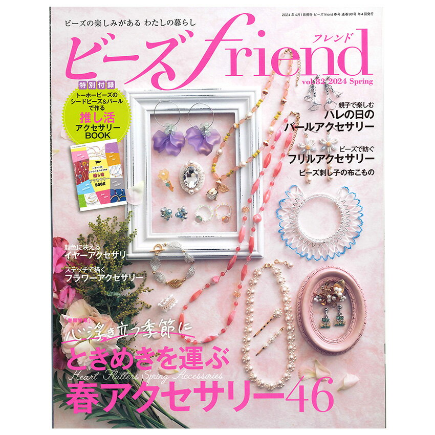 ビーズfriend 2024年 春号 Vol.82 | ブティック社 図書 本 書籍 ビーズ 春 アクセサリー フラワーモチーフ レシピ付き パールアクセサリー ビーズの活用術 こもの ハニカムドレス 別添小冊子