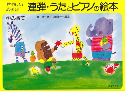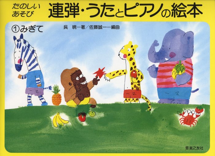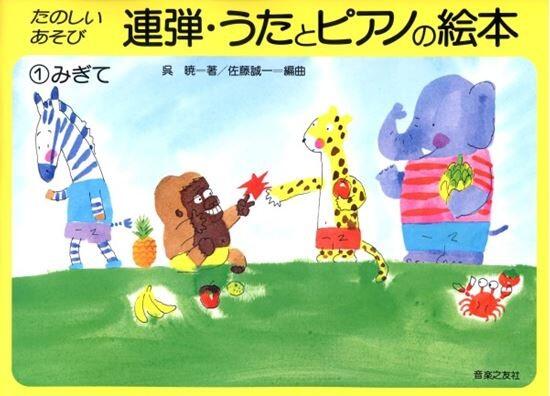 歌詩のついた短い旋律をうたったり、ピアノで弾いたりしながら音楽と読譜力と弾くテクニックが身につく音楽絵本。全巻全頁カラー刷り。 【発行】 1989年4月 作曲 (編成) タイトル 編曲 校訂者 運指研究者 1呉暁 (ソロ)みんな あそぼう呉暁2呉暁 (ソロ)なべなべ そこぬけ呉暁3呉暁 (ソロ)ぶー ぶー ぶたさん呉暁4呉暁 (ソロ)コアラ コアラ呉暁5呉暁 (ソロ)メリーさんのひつじ呉暁6呉暁 (ソロ)しっ しっ ついてくる呉暁7呉暁 (ソロ)おやつ チョコレート呉暁8呉暁 (ソロ)ピーナッツとアーモンド呉暁9呉暁 (ソロ)もういいかい もういいよ呉暁10呉暁 (ソロ)あきちゃん みつけた呉暁11呉暁 (ソロ)きゅうこうれっしゃ でるよ呉暁12呉暁 (ソロ)しんかんせんだ はやい呉暁13呉暁 (ソロ)かじかじ しょうぼうしゃ呉暁14呉暁 (ソロ)パトカー ピーポーピーポー呉暁15呉暁 (ソロ)どろんこ ぼうや呉暁16呉暁 (ソロ)おふろに はいる呉暁17呉暁 (ソロ)こねこが ニャーニャー呉暁18呉暁 (ソロ)こいぬが ころりん呉暁19呉暁 (ソロ)おにごっこ しましょう20 (ソロ)なわとび しましょう21 (ソロ)トントン トントン かいだん22 (ソロ)ラッパを ならせ23 (ソロ)にんじん トマト24 (ソロ)ピアノを ひいて25 (ソロ)おつきさま まるい26 (ソロ)おひさま でたよ27 (ソロ)おせんべ ポリポリ28 (ソロ)ドーナツ ドーナツ たべた29 (ソロ)みかんと りんご30 (ソロ)チョコレート31 (ソロ)おばけだ こわい32 (ソロ)エレベーターで すーう33 (ソロ)かばの あくび34 (ソロ)ながい うなぎ35 (ソロ)おおきな おおきな ひまわりさん36 (ソロ)ちいさな すみれさん37 (ソロ)たん たん たぬきの はらつづみ38 (ソロ)いたずら したら39 (ソロ)ソルフェージュと ピアノ