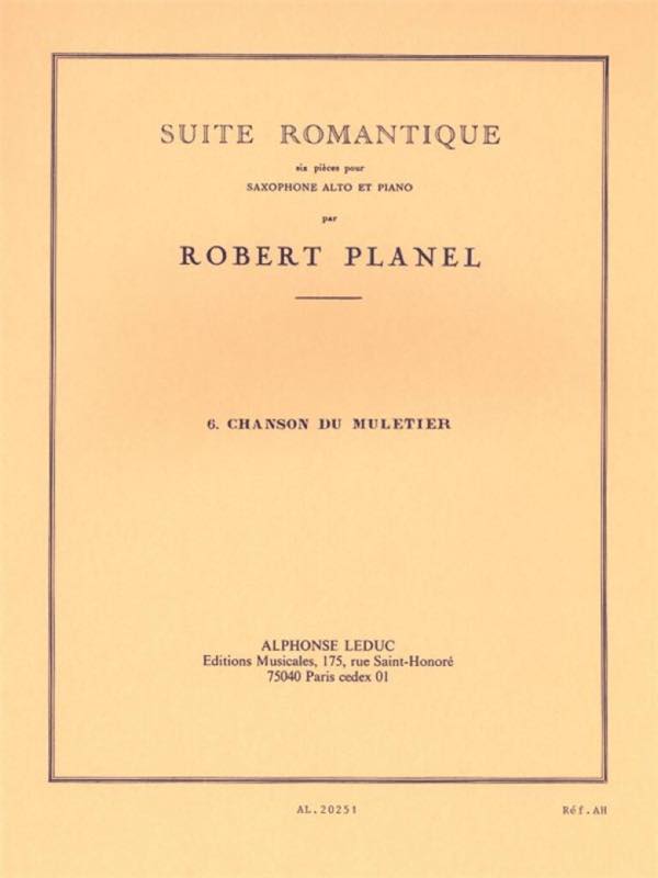 [楽譜] プラネル/ロマンティック組曲 6.ラバ引きの歌 (アルト・サクソフォーン)《輸入サックス楽譜》【10,000円以上送料無料】(Suite Romantique No.6 Chanson du Muletier)《輸入楽譜》