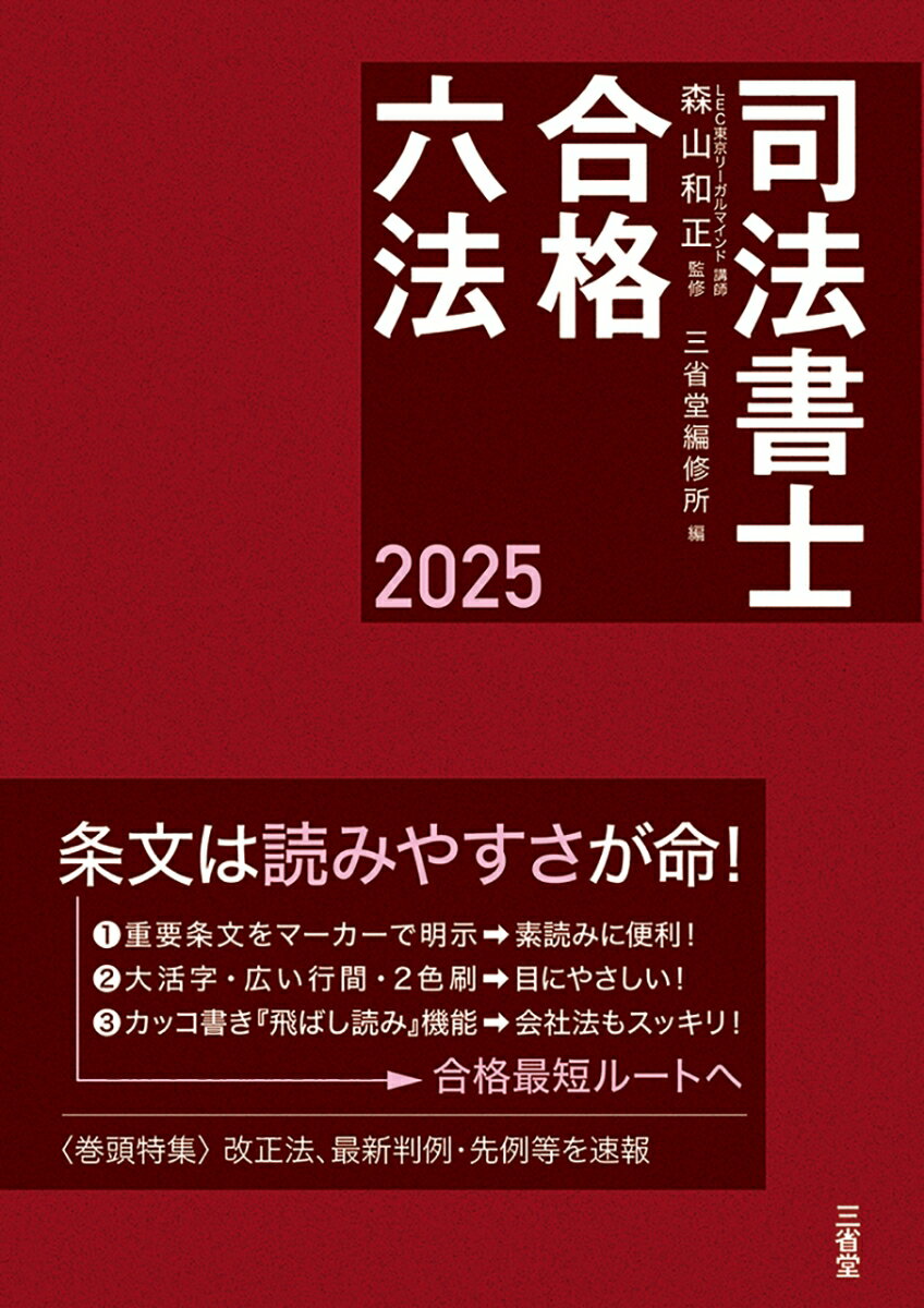 【中古】司法書士合格六法 2025/三省堂/森山和正(単行本)