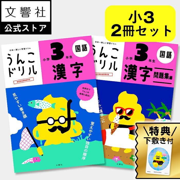■セット内容 うんこドリル 漢字 小学3年生ISBN:9784866511740漢字を効率よく覚える方法は、「繰り返し書くこと」だと言われています。 しかし、同じ文字をただ延々と書き続けるのは、 子どもにとってはつまらないことで、 集中力が途切れるのも無理はありません。 本書はそんな「漢字学習」の構造的弱点を克服することを目的に制作されました。 目指したのは、書き込むことが楽しくなる漢字ドリル。 日本一楽しい学習書です。 うんこドリル 漢字問題集編 小学3年生ISBN:9784866511801ドリルで練習した漢字をしっかり覚える「問題集」編。読解力が身につく、「うんこ長文」も収録 。間違えやすい漢字を総復習、学力チェックテストを巻末に収録!「笑いながら取り組める前向きな学習」という可能性をさらに確かなものにするための学習書です。 ・モニターの発色具合によって実際のものと色が異なる場合があります。 関連キーワード : 小学生 ドリル、小学生ドリル、小学3年 ドリル、小学3年生 ドリル、三年生 ドリル、3年生 ドリル、小3 ドリル、漢字ドリル、漢字、かんじ、国語、問題集、国語 問題集、語彙力、学習、夏休み、夏やすみ、送料無料、女の子、男の子、子供、おすすめ、プレゼント、ギフト、贈り物、新学期 ドリル、春休み ドリル、夏休み ドリル、冬休み ドリル人気の漢字学習ドリル2冊セット!うんこドリル 漢字 小学3年生 本書は「漢字学習」の構造的弱点を克服することを目的に制作されました。 目指したのは、書き込むことが楽しくなる漢字ドリル。 日本一楽しい学習書です。うんこドリル 漢字問題集編 小学3年生 ドリルで練習した漢字をしっかり覚える「問題集」編。読解力が身につく、「うんこ長文」も収録 。間違えやすい漢字を総復習、学力チェックテストを巻末に収録!文響社公式限定!オリジナル下敷き付下敷きの柄はランダムとなります。お選びいただけませんのでご了承ください。 関連商品はこちら【小3 国語】うんこドリル 漢字 小学...【小3 国語】うんこドリル 文章読解 ...【小3 全科】うんこ全科テスト 小学3...【3年生の学習はこれでかんぺき!】うん...うんこそうり1 うんこそうりとでんせ...