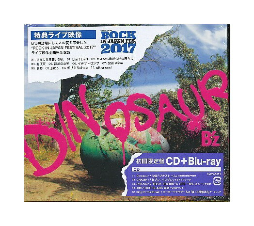 B’z CD+Blu-ray 【DINOSAUR】 初回限定盤 送料無料(日本国内) 2017/11/29発売 ○デビュー30周年のアニバーサリーイヤーにおくる通算20作目のオリジナル・アルバム「DINOSAUR」。揺るぐことなく進み続けるB’zの最新作、ついに誕生!前作から約3年ぶりのリリースとなる本作には、今年6月にB’z再始動を飾ったシングル「声明 / Still Alive」、11月から新TVCMがスタートするセブン-イレブンタイアップソング「CHAMP」、タイトルナンバー「Dinosaur」など全13曲を収録!!さらに、初回限定盤の特典DVDとBlu-rayには、初登場にしてこの夏を席巻した『ROCK IN JAPAN FESTIVAL 2017』のライブ映像を完全収録。熱狂のオープニングからアンコール「ultra soul」までの全11曲はまさに必見!! ■初回限定盤 ・Blu-ray付 ■収録内容 [CD]・Dinosaur ・声明 [ UCC BLACK無糖 TVCMソング ] ・Still Alive [ TBS系 日曜劇場「A LIFE〜愛しき人〜」主題歌 ] ・CHAMP [「セブン-イレブン」タイアップソング ] ・愛しき幽霊 ・King Of The Street ・Purple Pink Orange ・ハルカ ・それでもやっぱり ・Queen Of The Night ・弱い男 ・ルーフトップ ・SKYROCKET ※曲順未定 [Blu-ray] ◆ROCK IN JAPAN FESTIVAL 2017 1. さまよえる蒼い弾丸 2. Liar! Liar! 3. さよなら傷だらけの日々よ 4. 有頂天 5. 裸足の女神 6. イチブトゼンブ 7. Still Alive 8. 衝動 9. juice 10. ギリギリchop 11. ultra soul ※収録予定内容の為、発売の際に収録順・内容等変更になる場合がございますので、予めご了承下さいませ。 ■初回限定盤(DVD付)は こちら ■通常盤(CDのみ)は こちら 「B’z」さんの他のCD・DVDはこちらへ 【ご注文前にご確認下さい!!】(日本国内) ★ただ今のご注文の出荷日は、発売後 です。 ★配送方法は、誠に勝手ながら「DM便」または「郵便」を利用させていただきます。その他の配送方法をご希望の場合は、有料となる場合がございますので、あらかじめご理解の上ご了承くださいませ。 ★お待たせして申し訳ございませんが、輸送事情により、お品物の到着まで発送から2〜4日ほどかかりますので、ご理解の上、予めご了承下さいませ。 ★北海道、沖縄県、その他離島へのお届けにつきましては、上記のお届け日数や送料と異なるばあいがございますので、ご理解の上、予めご了承ください。(ヤマトDM便、ネコポスは除く) ★お急ぎの方は、配送方法で速達便をお選び下さい。速達便をご希望の場合は、前払いのお支払方法でお願い致します。(速達料金が加算となります。)なお、支払方法に代金引換をご希望の場合は、速達便をお選びいただいても通常便に変更しお送りします(到着日数があまり変わらないため)。予めご了承ください。