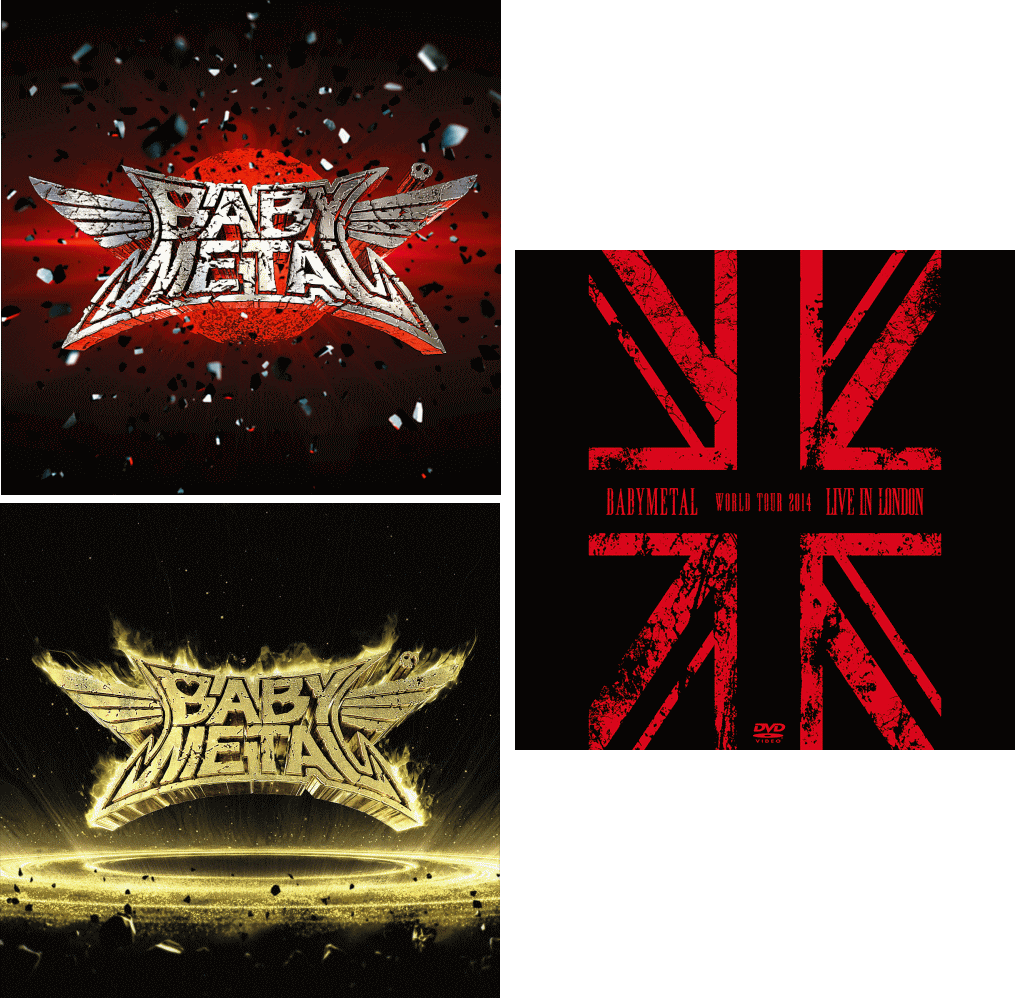 BABYMETAL(通常盤)TFCC-8646101.BABYMETAL DEATH02.メギツネ03.ギミチョコ!!04.いいね!05.紅月 -アカツキ-06.ド・キ・ド・キ☆モーニング07.おねだり大作戦08.4の歌09.ウ・キ・ウ・キ★ミッドナイト10.Catch me if you can11.悪夢の輪舞曲12.ヘドバンギャー!!13.イジメ、ダメ、ゼッタイMETAL RESISTANCE(通常盤)TFCC-8654601.Road of Resistance02.KARATE03.あわだまフィーバー04.ヤバッ!05.Amore - 蒼星 -06.META!メタ太郎07.シンコペーション08.GJ!09.Sis. Anger10.NO RAIN, NO RAINBOW11.Tales of The Destinies12.THE ONELIVE IN LONDON -BABYMETAL WORLD TOUR 2014-(DVD)TFBQ-18184DISC1 【BABYMETAL WORLD TOUR 2014 - 2014/7/7 at The Forum】01.BABYMETAL DEATH02.いいね!03.ウ・キ・ウ・キ★ミッドナイト04.悪夢の輪舞曲05.おねだり大作戦06.Catch me if you can07.紅月 –アカツキ-08.4の歌09.メギツネ10.ド・キ・ド・キ☆モーニング11.ギミチョコ!!12.ヘドバンギャー!!13.イジメ、ダメ、ゼッタイDISC2 【BABYMETAL BACK TO THE USA/UK TOUR 2014 - 2014/11/8 at O2 Academy Brixton】01.BABYMETAL DEATH02.いいね!03.ウ・キ・ウ・キ★ミッドナイト04.悪夢の輪舞曲05.4の歌06.Catch me if you can07.紅月 –アカツキ-08.おねだり大作戦09.メギツネ10.ド・キ・ド・キ☆モーニング11.ギミチョコ!!12.イジメ、ダメ、ゼッタイ13.ヘドバンギャー!!14.Road of ResistanceCD2枚+DVD2枚組販売元:トイズファクトリー一度聴いておきたい!今や世界の「BABYMETAL」のCD2作品とロンドンでのライブDVDをまとめてご紹介