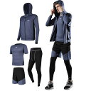[VARNIC]コンプレッションウェアセットメンズトレーニングウェア6点セット上下セット通気・防臭スポーツウェアベスト半袖シャツ長袖シャツパーカーハーフパンツレギンス吸汗速乾(グレーM)