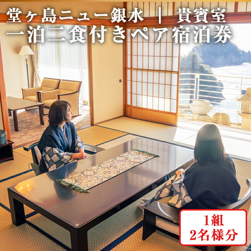 【ふるさと納税】堂ヶ島ニュー銀水「貴賓室 一泊二食付ペア宿泊券」 宿泊券 宿泊 旅行券 旅館 観光 ホテル 1泊2食 2名 ペア ペアチケット 食事 温泉 和食 ビュッフェ 和洋
