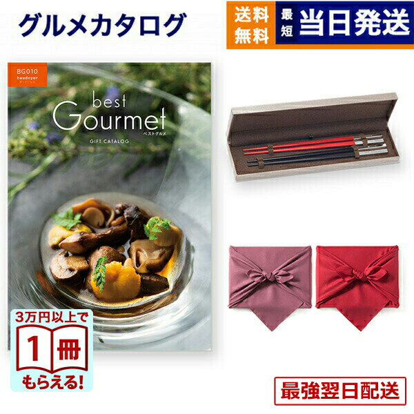 【13時まで当日】カタログギフト グルメ 送料無料 best Gourmet (ベストグルメ) グルメカタログギフト baudoyer (ボードイエル)+箸二膳(クリストフル) /風呂敷包み 内祝い お祝い 新築 出産 結婚式 快気祝い 引き出物 香典返し ギフトカタログ 食べ物 3万円コース 結婚祝い