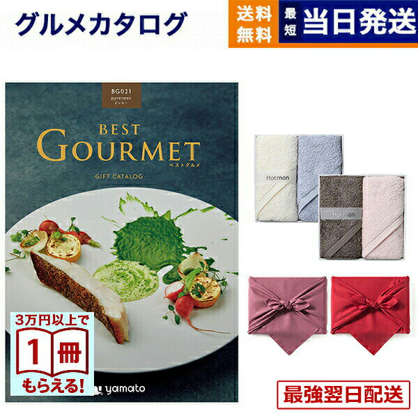 【13時まで当日】カタログギフト グルメ 送料無料 best Gourmet (ベストグルメ) グルメカタログギフト pyrenees (ピレネー) + Hotman 1秒タオル ホットマンカラーハンドタオル2枚セット /風呂敷包み 内祝い お祝い 新築 出産 結婚式 香典返し 満中陰志 食べ物 27000円コース