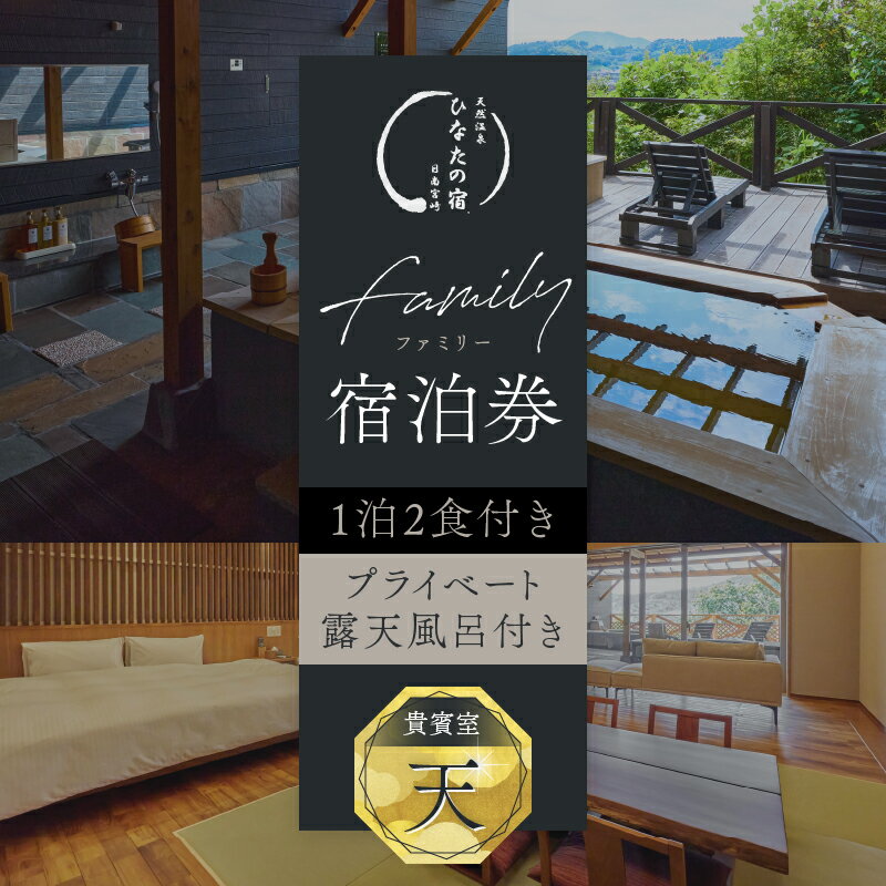 【ふるさと納税】ひなたの宿 ファミリー 宿泊券 1泊2食 付き 貴賓室「天」 温泉 旅行 観光 トラベル 国内 チケット 和モダン 客室風呂付 天然温泉 露天風呂 高級 贅沢 ご褒美 リゾート リフレッシュ レジャー 思い出 記念日 ペア お祝い おすすめ 宮崎県 日南市 送料無料